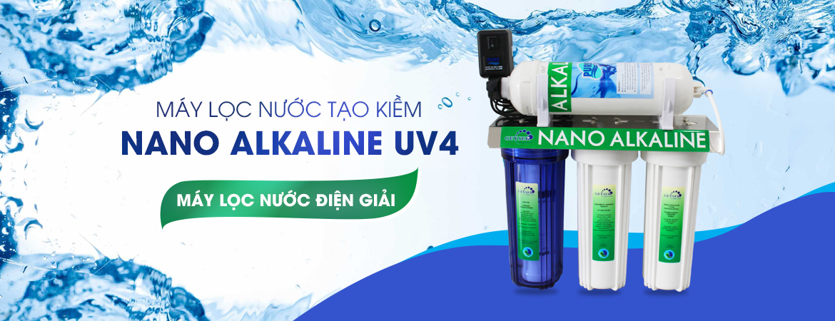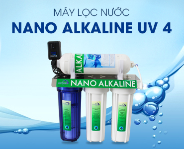 Máy lọc nước Nano Alkaline UV 4 tạo ra nước có tính điện giải, tích hợp đèn UV diệt khuẩn. Xử lý mọi nguồn nước, trung hòa axít thanh lọc cơ thể, khử các hóa chất, hữu cơ trong thực phẩm, rau củ quả.